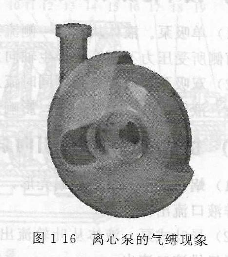 這種由于泵內(nèi)存有空氣造成離心泵不能吸液的現(xiàn)象稱為氣縛現(xiàn)象,如圖1-16所示。因此,離心泵在啟動(dòng)前必須將泵體和吸人管內(nèi)灌滿液體或抽出空氣。